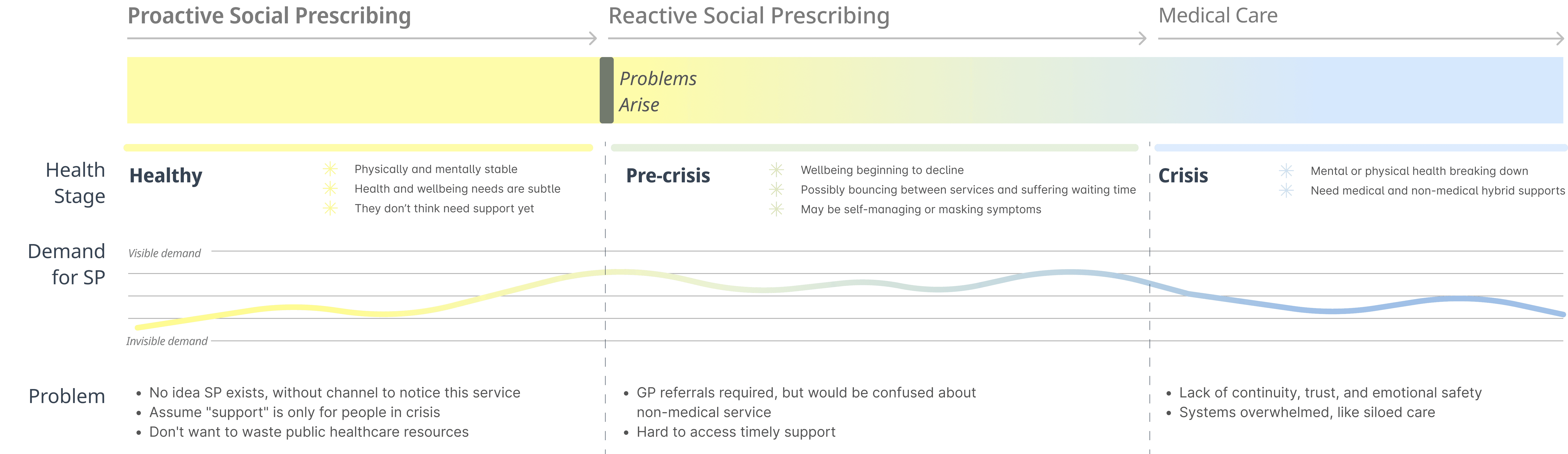 I chose to focus on SP because it sits at the intersection of health equity, social wellbeing, and public service transformation where design can help shift systems, not just services. SP offers a rare chance to reimagine care around what people actually need.