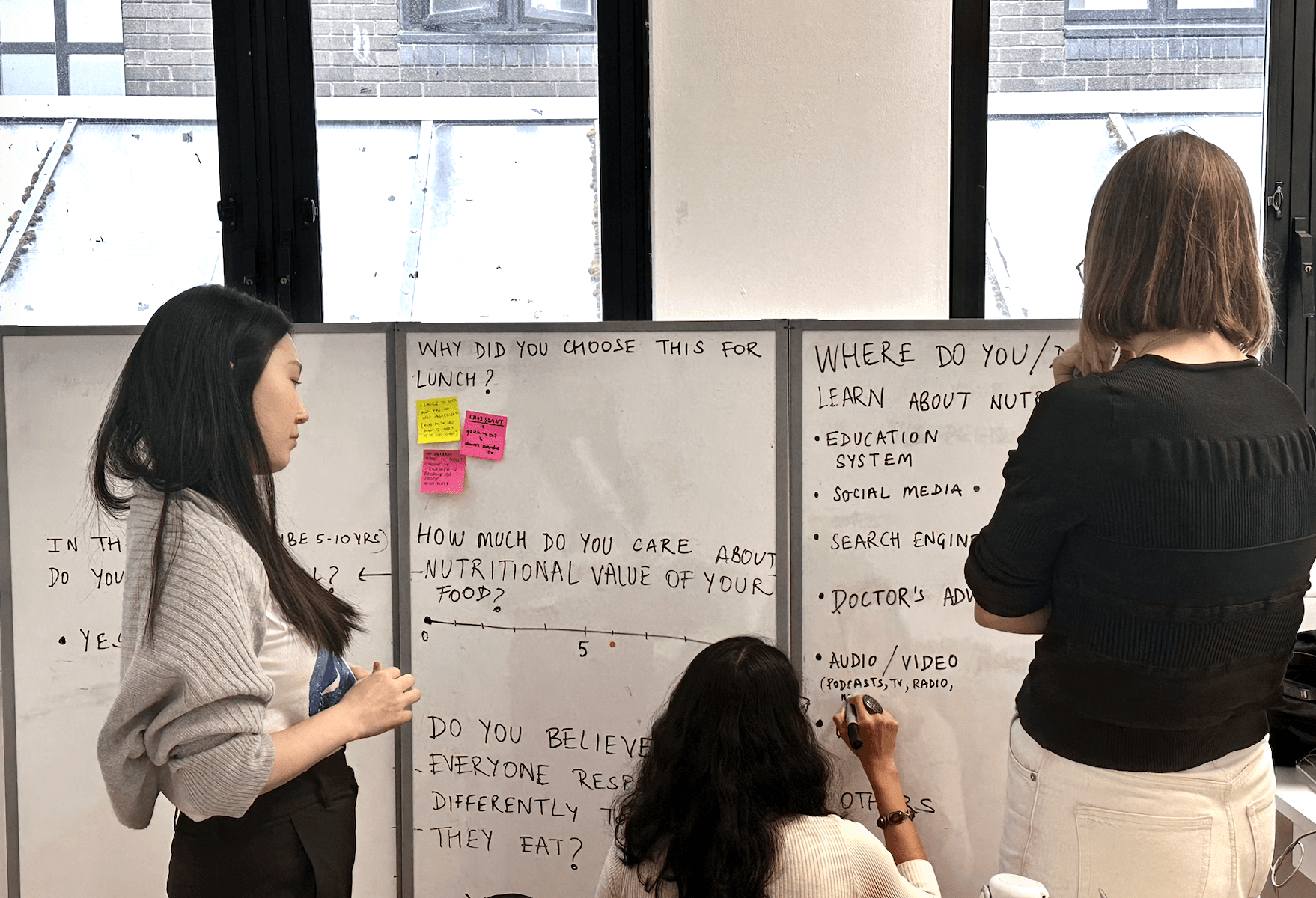 We took our questions into the streets, from campus canteens, to supermarket entrances, then public spaces, with a white board full of questions and an open mind for the conversations. We were trying to understand how people without any personalised nutrition experience make food decisions day-to-day, and how they think about personalised nutrition.